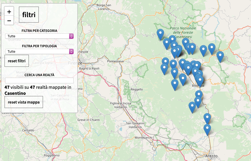 La nuova mappa che trovate nella pagina dedicata di Casentino che Cambia, offre una nuova navigazione e consultazione di tutte le realtà che sono state ritenute di interesse giornalistico dalla nostra redazione.