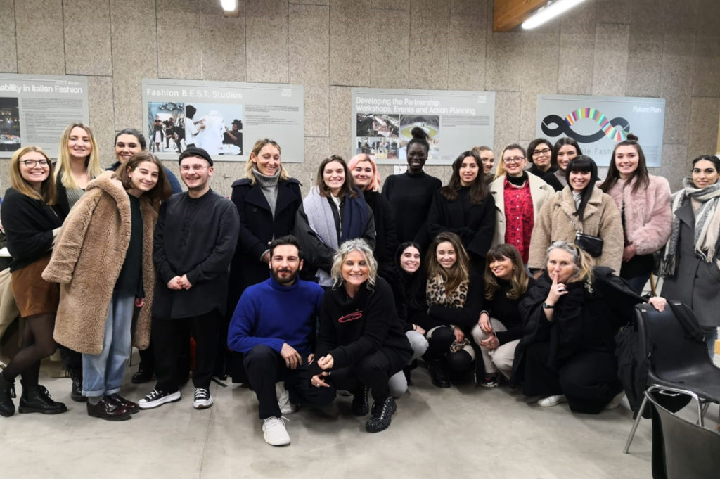 A Cittadellarte non solo hanno visitato gli spazi espositivi, ma soprattutto gli studios di Fashion B.E.S.T., dove hanno preso parte a un workshop curato da Tiziano Guardini e Olga Pirazzi. Due relatori d’eccezione: da una parte il fashion designer di caratura internazionale, premiato come “Best Emerging Designer” alla prima edizione dei Green Carpet Fashion Awards, che ha ricevuto riconoscimenti prestigiosi come il “Franca Sozzani GCC Award for Best Emerging Designer”, il “Bronze Hempel Fashion Award” e il “PETA Award”; dall’altra la responsabile dell’Ufficio Moda di Cittadellarte e del progetto Fashion B.E.S.T., un’officina operativa che dal 2009 si dedica allo sviluppo della sostenibilità nell’ambito del settore tessile e moda, dalle materie prime al design, dalla produzione alla formazione.
