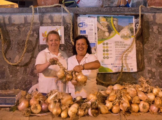 «Qui avevamo una cipolla giunta attorno all’anno Mille attraverso dei monaci basiliani, dolce, che a tagliarla non fa lacrimare gli occhi, legata ad una ritualità un po’ pagana e un po’ cristiana e con una sua vita tutta particolare», ci ha raccontato Angela Marzucca, presidente dell’Associazione Cipolla di Vatolla.