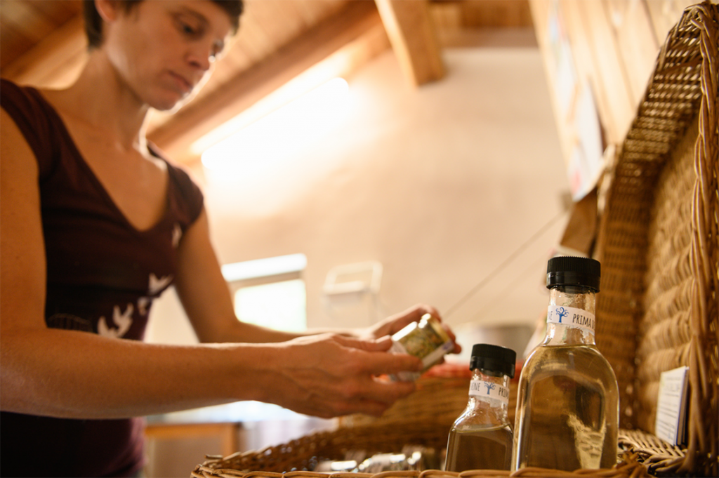 «Abbiamo scelto come settore quello delle erbe officinali per via del territorio in cui ci troviamo – riprende Chiara –, è una coltura che viene bene ed è anche molta richiesta. Inoltre vari turisti che passano per le nostre zone ci vengono a trovare incuriositi e vanno a vedere il nostro laboratorio e i campi». Il modo di coltivare presso La Calcina è in stretta armonia con la natura. Vengono seguiti i principi dell’agricoltura biologica e non vengono utilizzati né antiparassitari né fertilizzanti chimici. Per aiutare le piante a lottare contro i parassiti e a rafforzare le loro difese, usiamo macerati di nostra produzione e prodotti fitoterapici naturali.