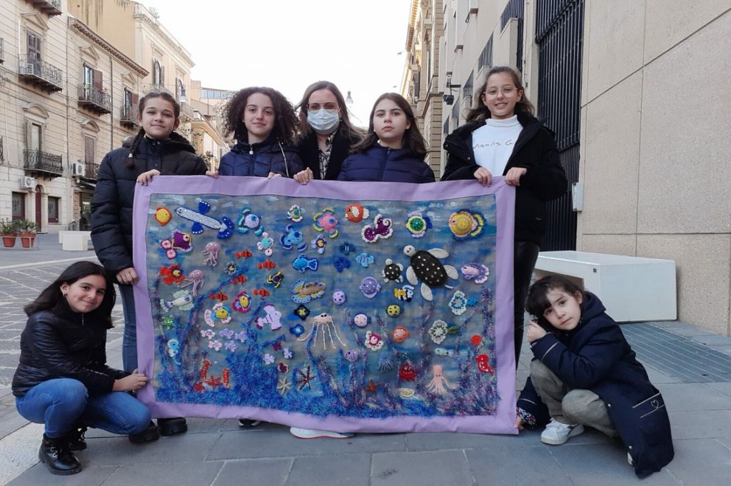 Durante la pandemia Maria Anna non si ferma e in collaborazione con Manidoro srl organizza un corso gratuito di uncinetto online per tutti i bambini di Italia. Un progetto ancora attivo che ha visto coinvolte quattro regioni – Sicilia, Lazio, Marche e Campania. «Alla fine tutti i partecipanti hanno inviato a casa mia quello che avevano realizzato e insieme abbiamo composto un manufatto collettivo, assemblato dalle mie allieve qui a Caltanissetta», prosegue Maria Anna.
