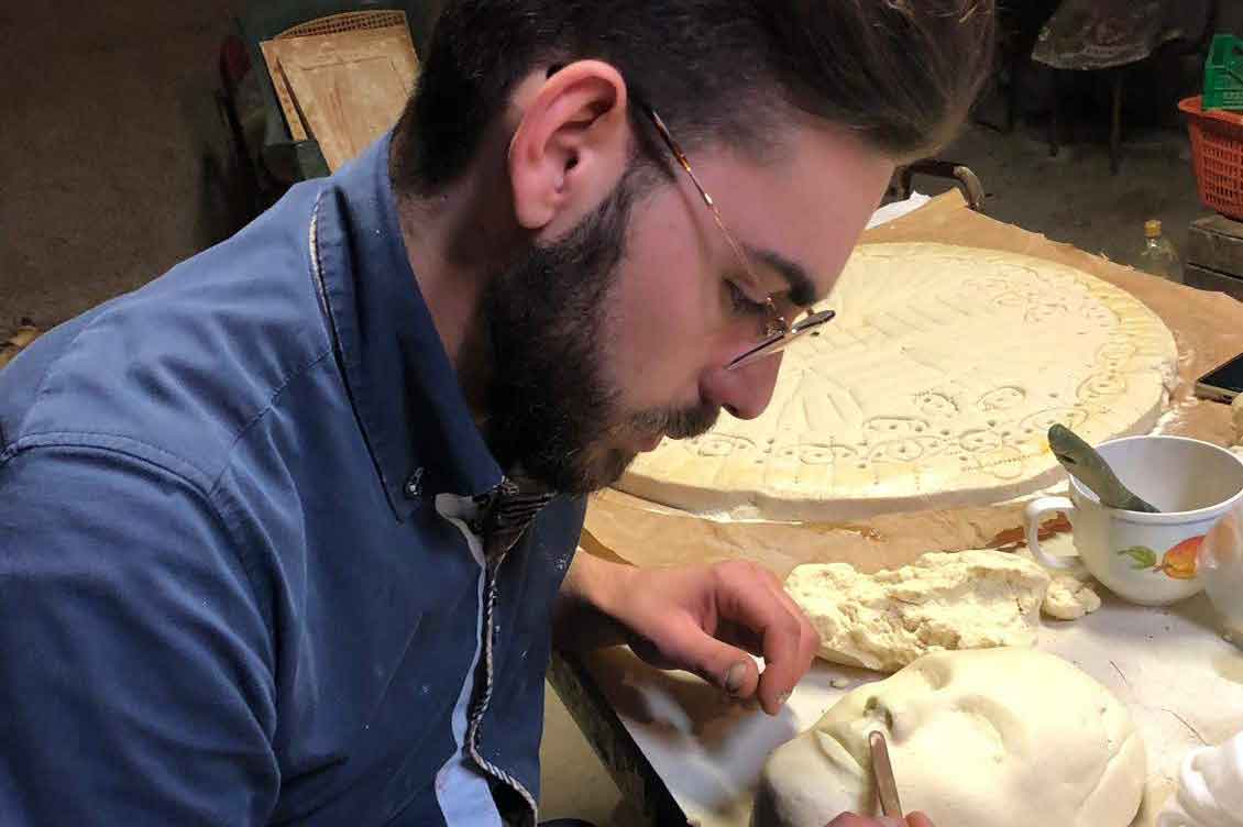 Salvatore, 26 anni, insegnante al Liceo Artistico di Agrigento, di questa tradizione antica si nutre sin da bambino. Da quando a soli 6 anni fu “invitato” a entrare nello storico magazzino della Confraternita Madunnara – uno dei laboratori dove ciascuna confraternita due mesi prima della Pasqua comincia a lavorare per creare queste suggestive architetture effimere di pane, pasta di sale, foglie di alloro e salice – diventando poi protagonista della manifestazione, non solo come scultore ma anche come membro del movimento Creatività di un popolo, che da qualche anno ha preso in mano le redini della manifestazione.