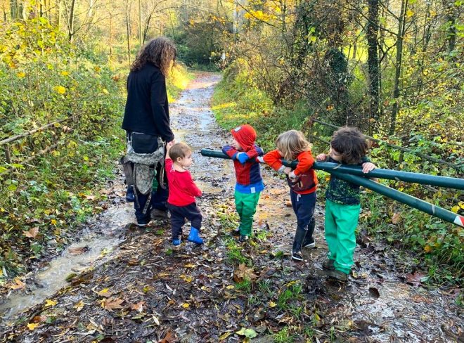 Un esempio concreto di questa circolarità viene dal tema della neurodiversità. Come ti anticipavo prima, negli ultimi anni famiglie e accompagnatori del bosco hanno espresso l’esigenza di strumenti specifici per riconoscere e rispondere ai bisogni deə bambinə neurodivergentə all’aperto. Da qui è nata l’idea di realizzare una ricerca partecipativa che ha coinvolto quasi una trentina di realtà educative che si ispirano alla pedagogia del bosco. L’obiettivo della ricerca è stato quello di mettere a fuoco e discutere buone pratiche e criticità dei processi inclusivi in atto nelle varie realtà. Attualmente, sto organizzando incontri di presentazione della ricerca nelle realtà coinvolte per restituire i risultati di questo lavoro ai partecipanti e al territorio in cui operano.