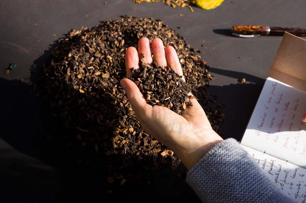 In gergo tecnico si dice “cucinare i colori”: per semplificare, possiamo dire che il processo funziona un po’ come quando si cucina un piatto di pasta al basilico. «Il basilico non avrà sempre lo stesso gusto, cambierà in base alla stagione o al clima». Ed è così anche con le erbe: si possono realizzare dei rosa, dei rossi, dei bruciati o degli arancioni che non sono sempre uguali perché sarà il loro contenuto di molecole a determinare il potere tintorio. «Le erbe, essendo sostanze naturali, variano a seconda della stagione o delle piogge e la loro stabilità cambia fortemente con gli effetti dei cambiamenti climatici».
