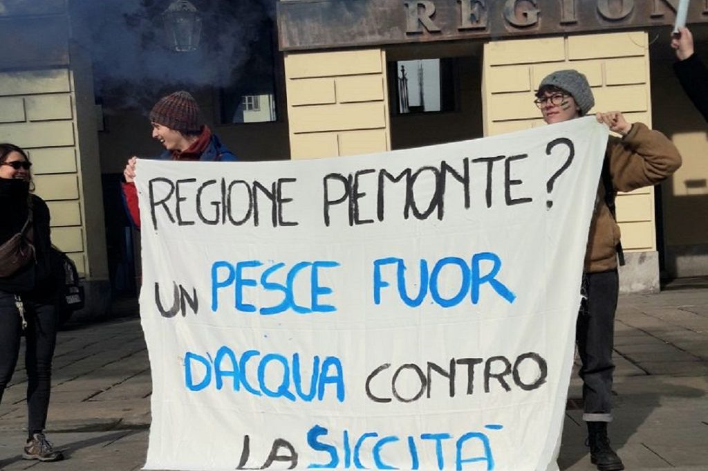 In piazza Solferino è stata la volta di Extinction Rebellion che ha affisso un manifesto sulla fontana Angelica con su scritto “Acqua per tutte o champagne per qualcuno?”. I manifestanti hanno poi colorato di rosso con del succo di barbabietola l’acqua della fontana e tre ragazze vestite da sirene si sono sdraiate ai bordi della fontana. Verso la fine del corteo, i manifestanti si sono fermati a lungo davanti al Politecnico di Torino, dove sull’asfalto hanno lasciato una enorme scritta “Università guerra” per denunciare i preoccupanti rapporti intrattenuti dall’ateneo torinese con diverse aziende belliche. E dopo il fragore della protesta, il corteo ha osservato un minuto di silenzio, per non dimenticare le migliaia di vittime dovute proprio al cambiamento climatico.