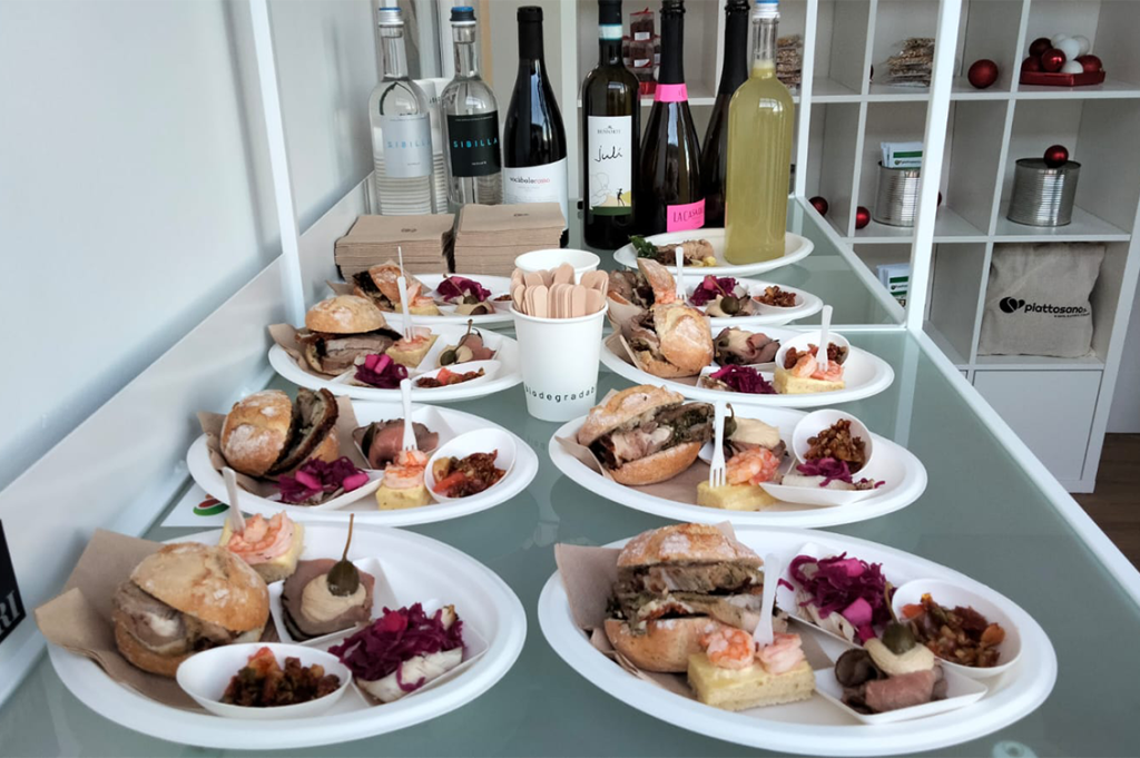 Oltre che sano e buono un piatto che deve essere consumato da un lavoratore in pausa pranzo o comunque da chi non ha molto tempo, deve essere pratico. Stefania ci spiega che i cibi di Piattosano sono conservati in atmosfera protettiva in vaschette di bioplastica 100% compostabile. «Tanta importanza è stata data alla ricerca del packaging ideale visto che non avevamo intenzione di utilizzare della plastica, nemmeno in minima parte. Abbiamo così deciso di optare per una vaschetta in fibra vegetale con la pellicola ecoralene biodegradabile».
