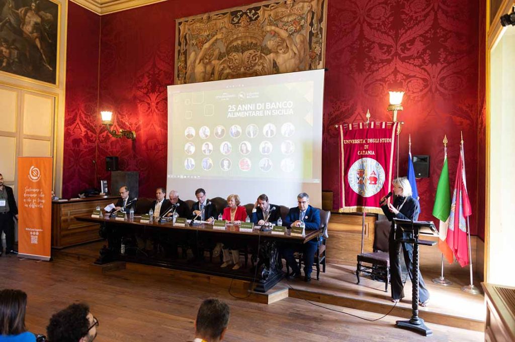 Impegno assiduo che ora viene celebrato con tanti appuntamenti. La prima tappa dei festeggiamenti dei 25 anni del Banco Alimentare della Sicilia si è svolta l’8 giugno nel Palazzo Centrale dell’Università di Catania. Un luogo scelto non a caso perché suggella la collaborazione intrapresa con l’Ateneo per coniugare i temi della solidarietà e della lotta allo spreco alimentare con quelli scientifici e accademici e trovare, grazie a questa unione, nuove risorse in termini di idee, progetti e fattibilità.