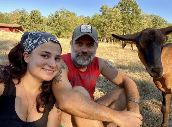 Così nella primavera del 2022, la coppia ha deciso di porre fine alla produzione casearia e trasformare la Fattoria ribelle in un santuario di animali liberi. «Di animali e persone libere», precisa Massimo. «Siamo fermamente convinti che la liberazione animale passi per quella umana e viceversa. Il nostro lavoro, sebbene su piccola scala, era diventato alienante. Avevamo smesso persino di alzare lo sguardo e renderci conto di che posto meraviglioso avessimo scelto per vivere».