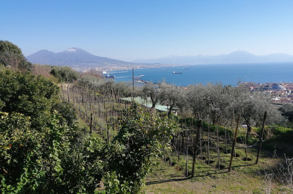 Sul fianco della collina del Vomero si estende la Vigna di San Martino, un raro esempio di azienda agricola urbana che si sviluppa per circa sette ettari tra il corso Vittorio Emanuele e i giardini della Certosa, ormai da anni gestita dall’associazione Piedi per la terra.