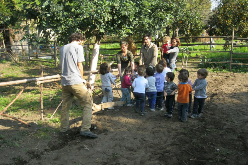 L’esperienza del cerchio è seguita da una passeggiata e infine si arriva alle pecorelle. «Cerchiamo sempre di trasmettere le motivazioni e il significato di quello che facciamo. In un laboratorio di falegnameria in cui si insegna solo a lavorare il legno, dopo un po’ il bambino inizierà a far chiasso e a perdere l’attenzione perché non riesce a coglierne il senso. In questo modo si perde l’opportunità di conoscere il legno anche attraverso il profumo, il tatto, attraverso la storia. Soprattutto, si perde l’opportunità di dare un senso a quello che si sta facendo».