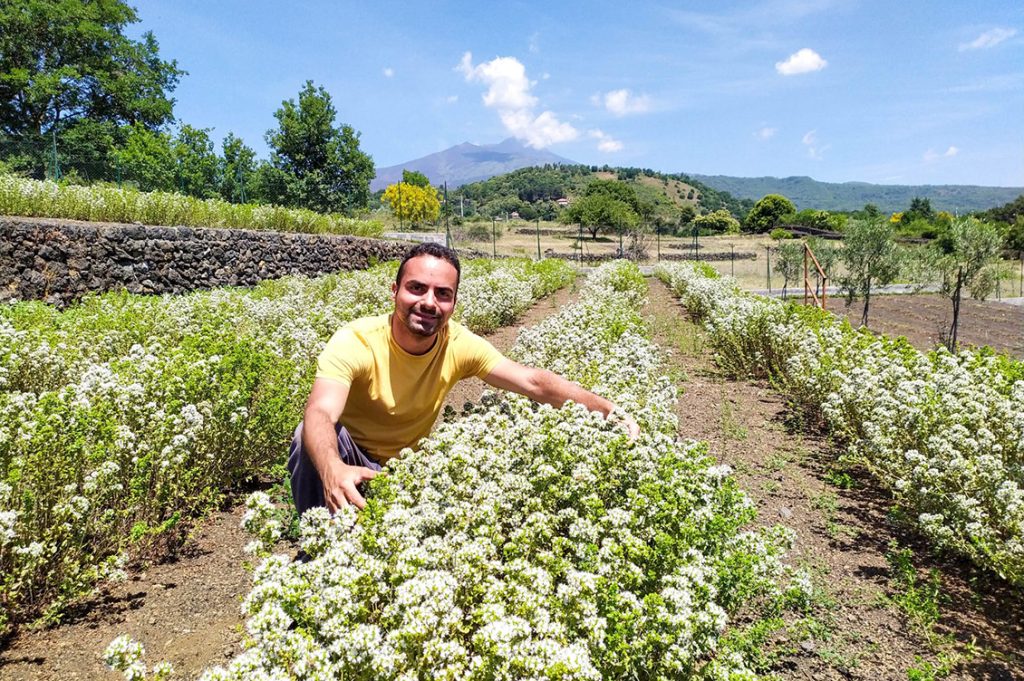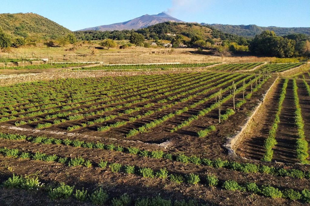 Sono sempre di più i giovani, e in Sicilia in particolare, che decidono di dedicarsi all’agricoltura e trasformare ettari di terra da curare, rispettare e ascoltare nel proprio lavoro quotidiano. È così che un terreno con l’Etna sullo sfondo e il pennacchio sempre fumante, diventa un vero e proprio ufficio dove perdersi e inebriarsi tra le essenze e le fragranze delle piante coltivate. Come in un dipinto dove il tempo sembra essersi fermato, in questi luoghi la natura regala visioni e sensazioni uniche che allietano i sensi e addolciscono le difficoltà lungo il percorso.
