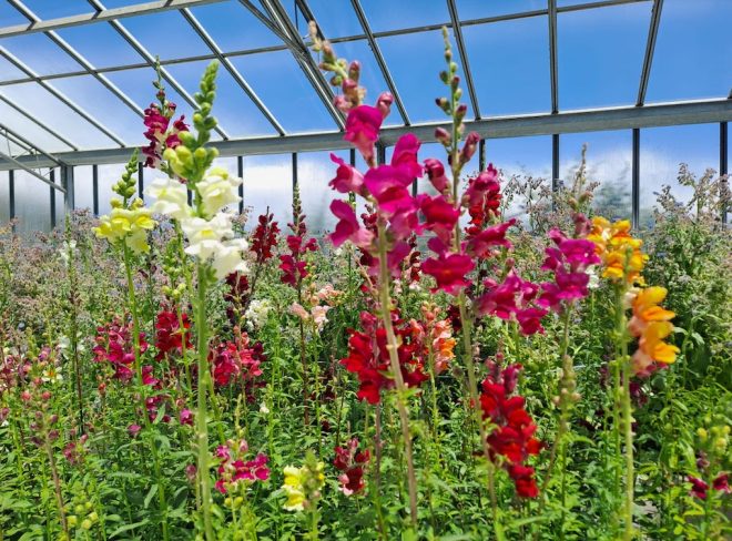Non volendo utilizzare sostanze chimiche come i pesticidi, quando abbiamo dei parassiti ci procuriamo i loro antagonisti naturali. In serra quindi teniamo i fiori più fragili in modo che sia anche più facile rilasciare gli antagonisti. All’aperto gli antagonisti tendono a disperdersi. In serra invece rimangono e si riescono a gestire con più facilità. Fuori teniamo le piante aromatiche che sono più resistenti. Ho anche vinto il premio Oscar Green 2023 nella categoria “Energie per il futuro e sostenibilità” grazie all’attenzione che dò a questi concetti.