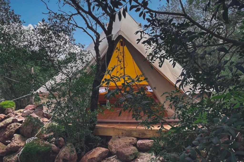 Tanto. Oggi la nostra struttura accoglie in modalità glamping viaggiatori e viaggiatrici, sardi e non. Da noi il cemento non esiste: volevamo impattare al minimo l’ambiente circostante, abbiamo lasciato intatta la vegetazione che ci accoglie e creato strutture amovibili e in legno. Abbiamo realizzato tutto noi, dalle docce fatte con le canne alle tende arredate riutilizzando e dando nuova vita a oggetti dimenticati. Non abbiamo acquistato prodotti nuovi ma abbiamo soprattutto riutilizzato quello che avevamo. Una cosa che da noi manca è internet, ma è una scelta ponderata: se l’obbiettivo della struttura è riconnettersi con la natura ma ancor prima con se stessi, bisogna godersi il momento senza troppe distrazioni.