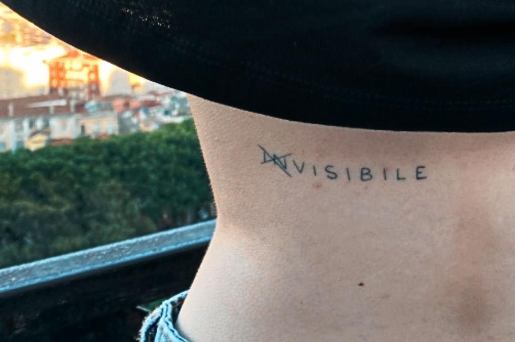 A Cagliari tra le persone scese in piazza c’era anche Rebecca Sechi. 22 anni, studentessa in Criminologia e Sociologia. La sua esperienza in quanto persona che ha affrontato dei disturbi del comportamento alimentare (DCA) è un racconto che passa per il dolore, la liberazione e la rabbia. Il suo corpo è testimonianza in divenire di un percorso di cura dove le parole gentili, fanno da scheletro all’anima: i suoi tatuaggi sono tappe di un itinerario fatto di ascolto, comprensione, amore e perdono. Quella che allo stesso tempo è traguardo e punto di partenza, è la sua rinascita.