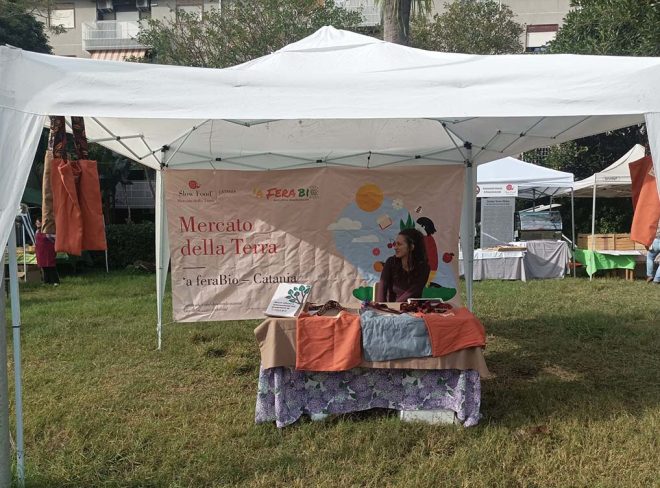 Dal 2022 è arrivata anche la collaborazione con Slow Food Catania, con cui A’ Fera Bio ha sottoscritto un protocollo di intesa per la realizzazione del Mercato di Terra. Il mercato di Terra è uno spazio dove promuovere un modello di produzione, vendita e consumo sostenibile e a filiera corta e, allo stesso tempo, capace di veicolare, oltre alla vendita, attività di educazione alimentare e ambientale per il cliente finale.