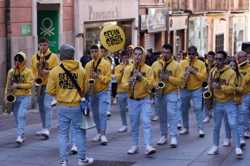 Tradurre in parole la musica, il coinvolgimento e l’adrenalina che caratterizza la Seuin Street Band può non essere semplice. Incrociarli nelle loro esibizioni pubbliche tra le vie di città e paesi è un’emozione unica: un’onda gialla di musicisti che alle melodie proposte abbinano performance in movimento, in una sincronia di note e movenze che trasforma lo spazio pubblico in un palcoscenico unico nel suo genere. In questa intervista è Stefano Gaviano a raccontare la nascita e il ruolo sociale e politico di una banda che sta facendo la storia della musica sarda.