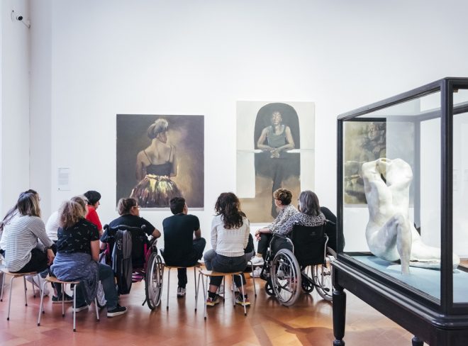 Cosa si intende per accessibilità in un contesto museale dove non ci sono collezioni permanenti e gli spazi sono continuamente ripensati in funzione di mostre e attività sempre diverse? «Nell’arco dell’anno – spiega Irene Balzani – proponiamo due mostre che cambiano gli spazi e il modo di percepire il luogo. Le opere abbracciano diverse epoche, dall’arte antica a quella contemporanea, e linguaggi artistici differenti, ma manteniamo costanti le proposte rivolte ai pubblici. In questa continuità, i progetti si moltiplicano: dalle famiglie alle scuole con una crescente attenzione nei confronti dell’accessibilità».