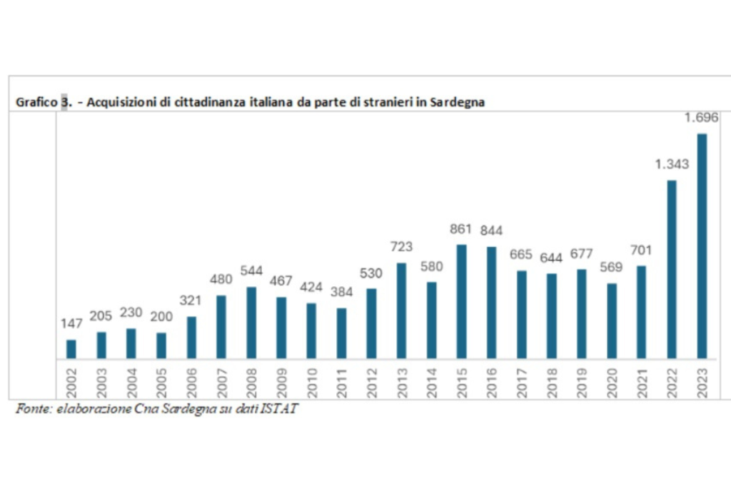 Negli ultimi vent’anni la Sardegna ha perso oltre 100mila abitanti. A fare da contraltare però c’è un fenomeno in crescita: l’incremento costante delle acquisizioni di cittadinanza degli stranieri e la trasformazione da Isola storicamente caratterizzata dall’emigrazione a destinazione di flussi. I dati sono contenuti in un report del Centro studi della Cna del quale ci parla Indip con questo contributo che partendo dai numeri guarda al futuro dell’Isola.