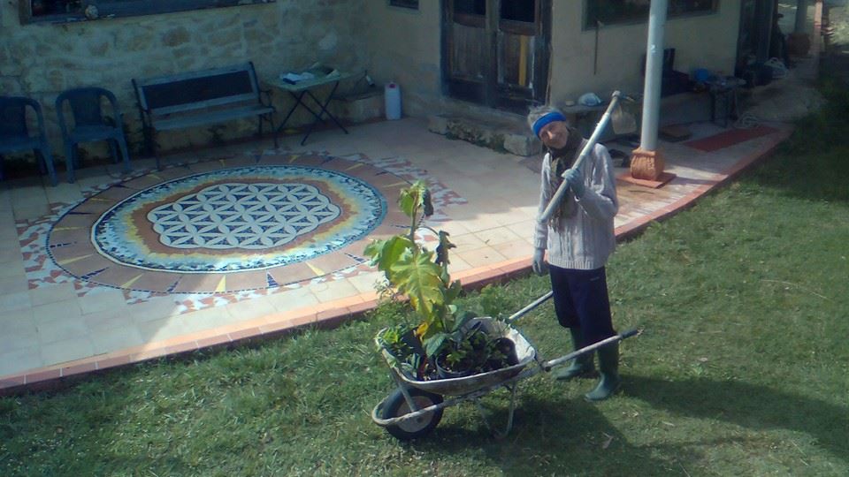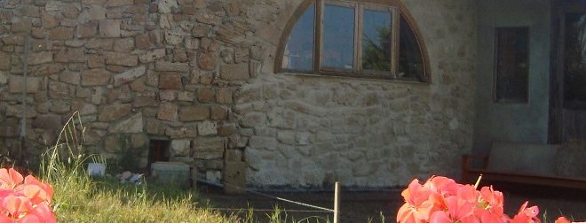 La casa è costruita con materiali ecologici e segue una geometria sacrale, seguendo delle linee circolari. La costruzione della casa (iniziata circa venti anni fa) si è accompagnata ad una rigenerazione del terreno, precedentemente arido, e che adesso si presta a diversi usi, come ad esempio l’orto e la semina del grano.