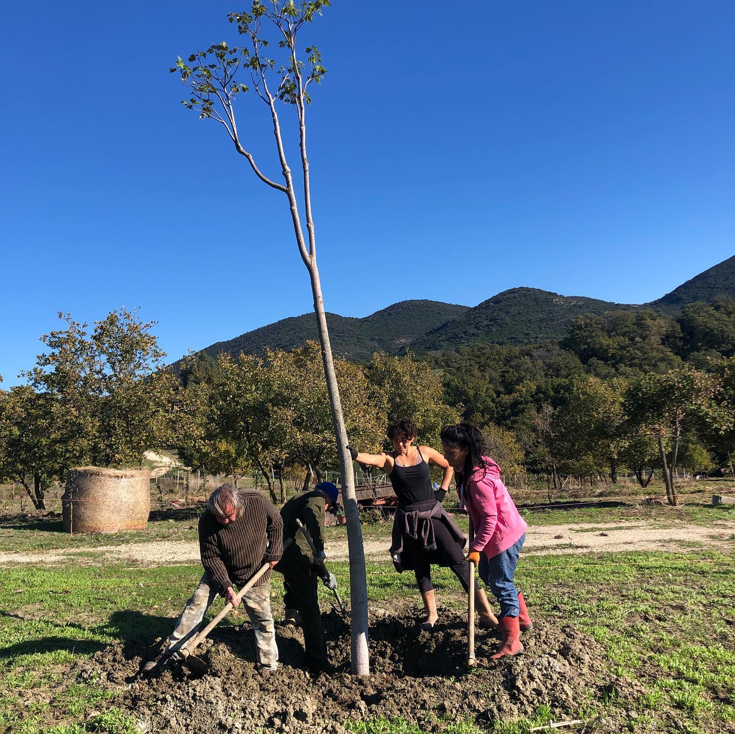 In pochi anni la morfologia del luogo si è trasformata completamente: da essere un terreno incolto con qualche quercia e poche specie animali e vegetali, è diventato una culla di biodiversità: grazie alla permacultura, alla progettazione e a tutte le persone che hanno contribuito con le loro conoscenze e il loro lavoro, ora ci sono circa 400 nuovi alberi da frutto inseriti in un agroforesta di 5000 mq, una gestione dell’acqua con canali e stagni, un orto sinergico, piante spontanee e aromatiche, animali da fattoria che vivono in semi libertà, piccole zone di ospitalità spartane ma accoglienti.