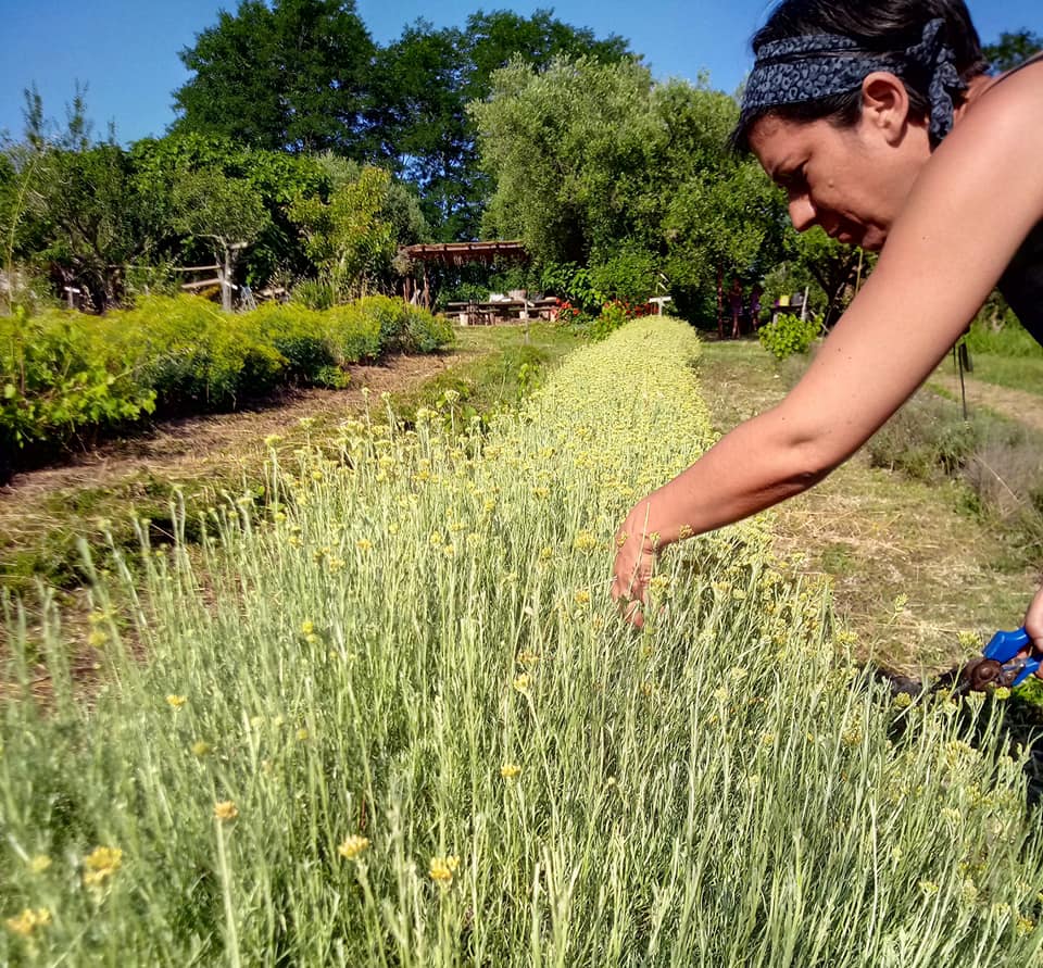 Nel terreno vengono coltivate piante aromatiche ed erbe officinali, che poi vengono essiccate in essiccatore solare autocostruito e poi macinate a mano per conservarne le proprietà. Oltre alle erbe, Lorenzo e Deliana gestiscono anche un piccolo orto e dei terreni abbandonati dove curano alcuni alberi di agrumi, producendo poi trasformati come marmellate e confetture.