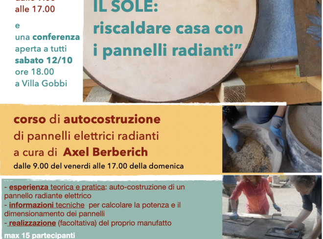 “NATURALE COME IL SOLE: riscaldare casa con i pannelli radianti” corso di autocostruzione di pannelli elettrici radianti a cura di […]