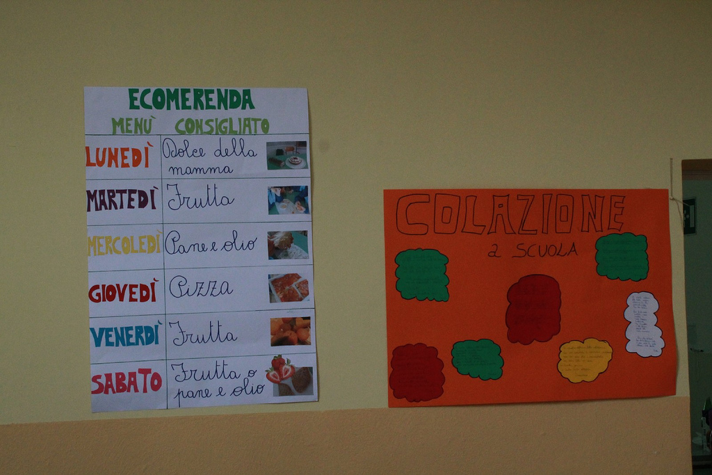 Tutto diventa un gioco da bambini. Nella mensa scolastica gli alunni vengono riabituati ai sapori genuini e sono serviti solo i prodotti che la terra produce: il verde non fa storcere il naso e i bambini mangiano fave e piselli a pranzo, pane e marmellata a colazione, pane e olio per merenda. Si chiamano eco-colazione e eco-merenda senza piatti né bicchieri di carta o plastica, tutto è rigorosamente organizzato nel rispetto della filosofia “Rifiuti Zero”.