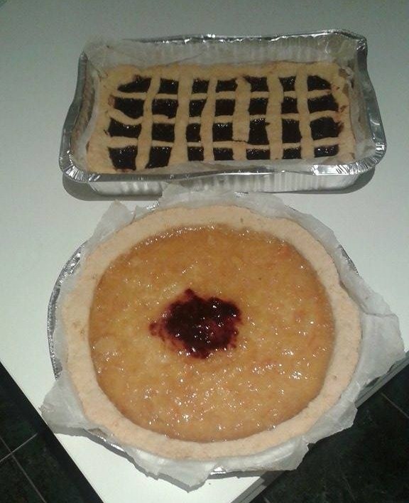 Ho deciso di fare due crostate, una con farina di riso, perché un ragazzo fra loro è celiaco. È un primo passo, spero di riuscire a farne altri. Ho scelto una marmellata d’uva fragola regalatami dalla mia vicina di casa, l’uva l’avevamo raccolta insieme a casa di suo padre in una tardiva mattina di fine ottobre.