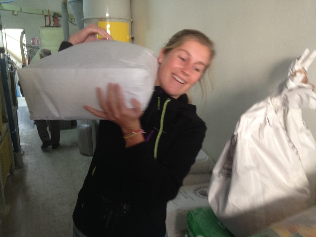 La giornata con Giovanni e il suo amico Mario è intensa. La mattina recuperariamo il suo grano da un mulino che macina lentamente a pietra. Se tale processo fosse troppo veloce la farina tenderebbe a scaldarsi più del dovuto e si perderebbero parte dei nutrienti contenuti nel germe. Inoltre per garantire un prodotto sempre fresco, molisce solo la quantità necessaria. Da Giovanni si produce rigorosamente farina di tipo 2 e 1. Saragolla, Germanella, Senatori Cappelli, Risciolla, Segale, sono questi alcuni dei nomi di grani da cui si ottiene la vera farina.
