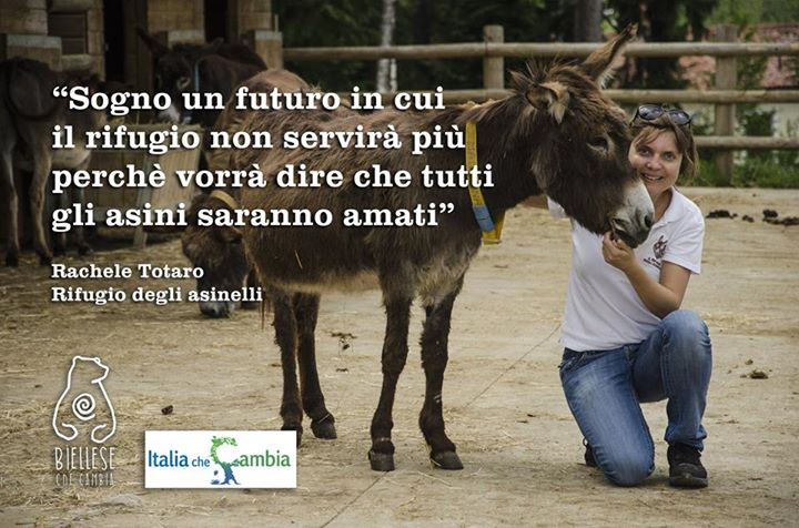 Era un progetto iniziato nella provincia di Trento da parte del Presidente della Regione per ripulire le strade con gli asinelli. Dopo il clamore dato dalla notizia, in poco tempo gli asini sono stati abbandonati e infine ricollocati proprio nel rifugio dove siamo oggi. Il Sole si fa più insistente e Rachele mette gli occhiali da Sole, dicendoci di come combattono l’utilizzo, soprattutto in zone turistiche degli “Asini Taxi” che accompagnano i turisti per alcuni metri, rovinandone inevitabilmente la loro spina dorsale. Il suo sogno è che non vi sia è più necessità di un posto come il rifugio degli asinelli: significherebbe aver educato a sufficienza la persone a trattarli con rispetto e dignità. Con queste parole ci salutiamo e arriviamo a Biella per riprendere in mano le nostre bici, gentilmente riparate da Giuseppe, Antonio ed Emilie.