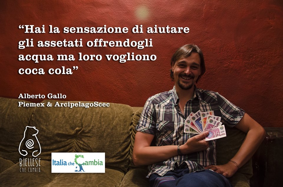 Allo stesso tempo sta portando avanti un altro progetto nel Biellese, chiamato PIEMEX. Il tutto era nato cinque anni prima in Sardegna, in un piccolo paese in cui la disoccupazione e la crisi stavano generando grosse difficoltà alla comunità locale. È entusiasmante ascoltarlo: crede immensamente nelle potenzialità di questi strumenti e spera che possa sempre più svilupparsi nel Biellese. Piemex, così come Sardex , è un circuito di credito commerciale all’interno del quale le aziende si scambiano beni e servizi utilizzando una moneta complementare denominata piemex.