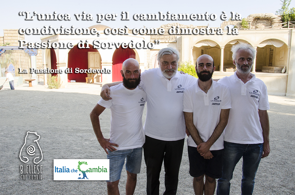 Dei 1300 abitanti circa l’80% della comunità è coinvolta. Numeri impressionanti, così come è impressionante l’anfiteatro dove ci porta Andrea per incontrare il presidente dell’associazione e alcuni degli attori che in serata avrebbero recitato. Ogni cinque anni l’intera cittadina si organizza insieme per rendere possibile questo evento nel periodo estivo. Un totale di trentanove rappresentazioni. È incredibile. Aldilà della questione religiosa, è commovente vedere come in un piccolo paesino di così pochi abitanti si sia riuscita a mantenere una tradizione del genere. Ora vi sono americani, giapponesi che vengono a vedere lo spettacolo. Ci dice Carlo, il presidente, che ancor più importante dello spettacolo è ciò che esso genera: un momento di forte aggregazione per tutta la comunità. Per lui il cambiamento arriva attraverso la condivisione, e spera che Biella possa prendere Sordevolo che esempio nella voglia di stare insieme e creare qualcosa insieme.
