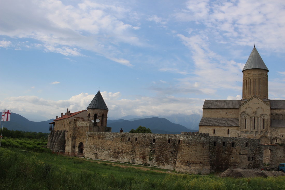 Da Tbilisi passiamo un colle a 1700mt prima di riscendere verso Telavi. Facciamo risalire il nostro tasso di zuccheri mangiando accanto ai venditori di miele di montagna che si alternano a quelli di funghi lungo tutta la strada. Una grande pianura si apre davanti a noi, campi di grano e girasole squadrati… e dei vigneti dai quali si ottiene il rinomato vino di Kakétie (in Georgia ci tengono molto al loro vino. In aeroporto danno il benvenuto regalando una bottiglia a passeggero, ci riferiscono alcune persone atterrate a Batumi).
