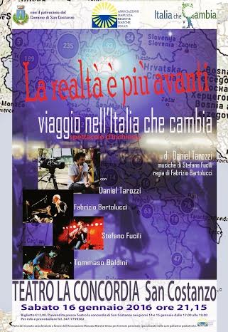Dovrebbero vederlo perché sul palco ci saranno un grande regista e due ottimi musicisti e insieme a loro un giornalista un po’ pazzo che gli racconterà le esperienze di alcune persone “semplicemente stra-Ordinarie”. Storie mai raccontate. Storie che dimostrano che si può fare davvero, che il cambiamento è alla portata di tutte e tutti. Lo spettatore uscirà da questa serata con la consapevolezza profonda che il proprio sogno è alla portata e che il mondo è pieno di persone come lui, pronte ad attivarsi e a superare ogni ostacolo per costruire un mondo sostenibile a livello personale, sociale, ambientale, economico e politico. Dove? Beh, per ora nei pressi di Fano, sabato 16 gennaio 2016. Poi, speriamo, in molte altre città italiane. Sognare l’impossibile e realizzarlo. Questo mi hanno insegnato le centinaia di persone che ho incontrato in questi anni e questo stiamo cercando di fare portando in teatro questa Italia che Cambia!
