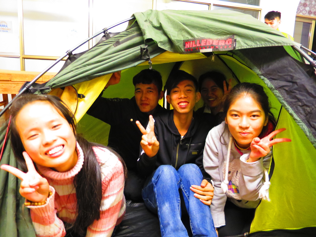 Durante la nostra permanenza, incontriamo la coordinatrice LP4Y Vietnam: Cécile , anche lei ha viaggiato in bici, o più esattamente in tripletta (bici a tre posti) in America latina. Il centro Song Hong, avviato da poco più di un anno, accoglie 8 ragazzi che stanno organizzando l’attività economica del centro: produzione di cornici e lavagnette. La settimana è ritmata da corsi d’inglese, d’informatica, di contabilità… dei momenti di riflessione sul loro futuro professionale, sui loro sogni. E un pomeriggio racconto del mio viaggio in bici.