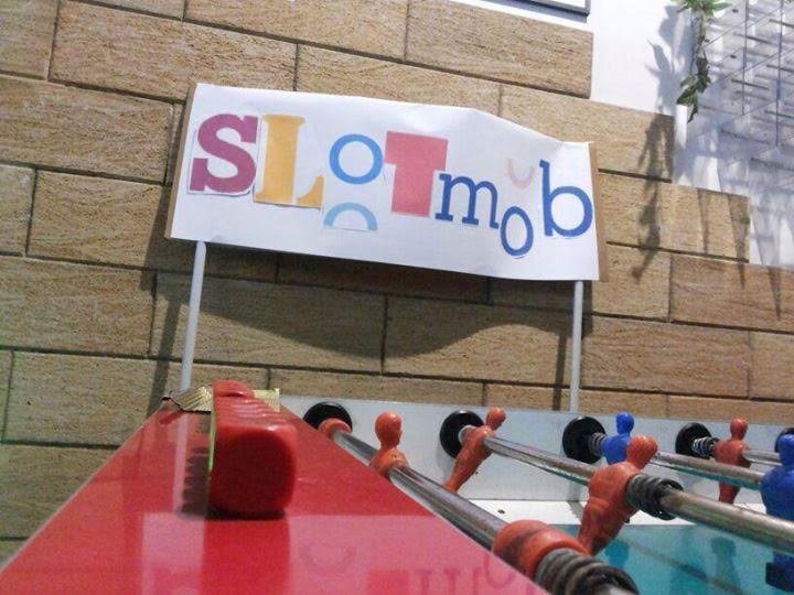 In questo articolo non abbiamo mai definito l’azzardo come gioco, non per caso ma come scelta consapevole, nata da una riflessione di Gabriele Mandolesi. “Una caratteristica dei nostri slot mob è che noi portiamo i giochi, ma quelli veri! Uno dei grandi inganni dell’azzardo è che loro lo chiamano gioco, l’azzardo. Se io ti dico andiamo ad azzardare c’è un accezione negativa che fa capire la reale pericolosità dell’azione. Il gioco invece richiama a qualcosa di innocuo, positivo e leggero, caratteristiche che sono l’esatto contrario dell’azzardo. Abbiamo detto no a questa operazione di marketing, infatti noi nei nostri slot mob portiamo il biliardino, il ping pong perché il gioco è qualcosa che ti mette in relazione con le altre persone. L’azzardo, invece, ti isola”.