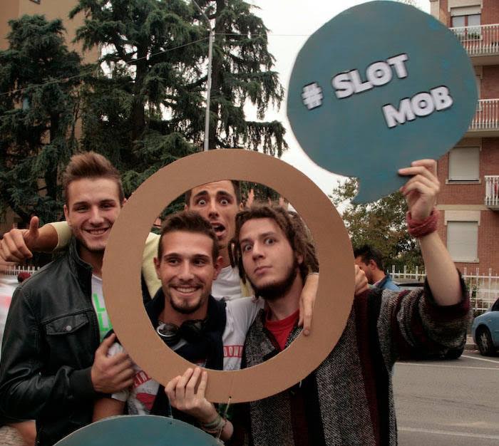 Il riconoscimento pubblico segue quindi lo stesso schema: un gruppo numeroso di persone si ritrovano e, tutte insieme, decidono di fare colazione o un aperitivo nel bar che ha detto no all’azzardo. Il successo è stato esponenziale: “eravamo partiti per fare tre slot mob – ci racconta Gabriele – e siamo finiti, dopo due anni, ad averne fatti centodiciotto. Siamo stati tempestati di telefonate da tutta Italia da persone che volevamo organizzare uno slot mob nelle loro rispettive città, noi abbiamo solo suggerito il format e li abbiamo aiutati nella comunicazione dell’evento, abbiamo insistito affinché ognuno si prendesse la responsabilità nella propria città e li organizzasse con la gente del luogo”.