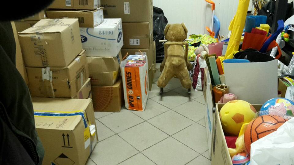 Al momento siamo accampati in un villaggio di casette di legno, dove l’amministrazione comunale ci ha dato in uso una ex-chiesa prefabbricata. Grazie alle donazioni raccolte da amici intraprendenti in pochi giorni la chiesetta si è trasformata in un centro polifunzionale colmo di giocattoli per tutte le età, attrezzature per proiettare film, gli strumenti che siamo riusciti a recuperare dalla mia casa e dallo studio di Piergiorgio.