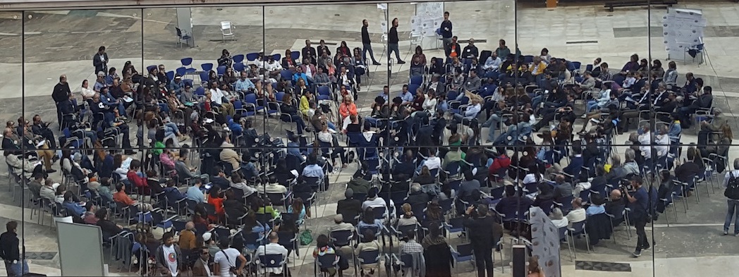 Tavoli di lavoro dove si discuteva di tematiche che spaziavano dalla sovranità alimentare fino alla bioarchitettura. Dall’autoproduzione energetica alle produzioni locali. Da quali indicatori utilizzare per calcolare il benessere di uno stato seguendo l’esempio del Bhutan e del suo indice di felicità GNH (Global National Happiness) a come rimodellare la finanza per il bene comune. Dalla creazione della moneta e sovranità monetaria a come costruire le banche sui valori della persona prima del profitto. Uno spazio dedicato agli incontri, dove tutti avevano la possibilità di mettersi in gioco, partecipare in maniera attiva e dal quale più di 100 azioni concrete su come implementare queste tematiche sono nate.