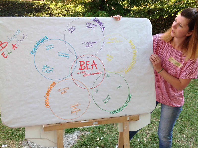 Dopo un mese circa dalla presentazione ufficiale del progetto BEA (Bologna Edu Action), che allora non aveva ancora il nome, a Dynamo velostazione di Bologna ci troviamo di nuovo in città ma in un accogliente centro sociale con spazi all’aperto di fronte al parco del Cavaticcio. Una bella giornata, mite e con l’aria frizzante di primavera.