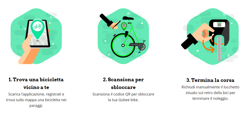 Le bici si possono utilizzare attraverso un’app, liberamente scaricabile dal web. Una volta scaricata sullo smartphone, è necessario registrarsi e da lì si potrà immediatamente sbloccare le biciclette.