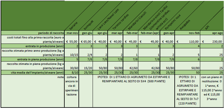 Di seguito la lista ragionata delle nostre proposte, con costi, tempi, quantità di raccolto attesi.