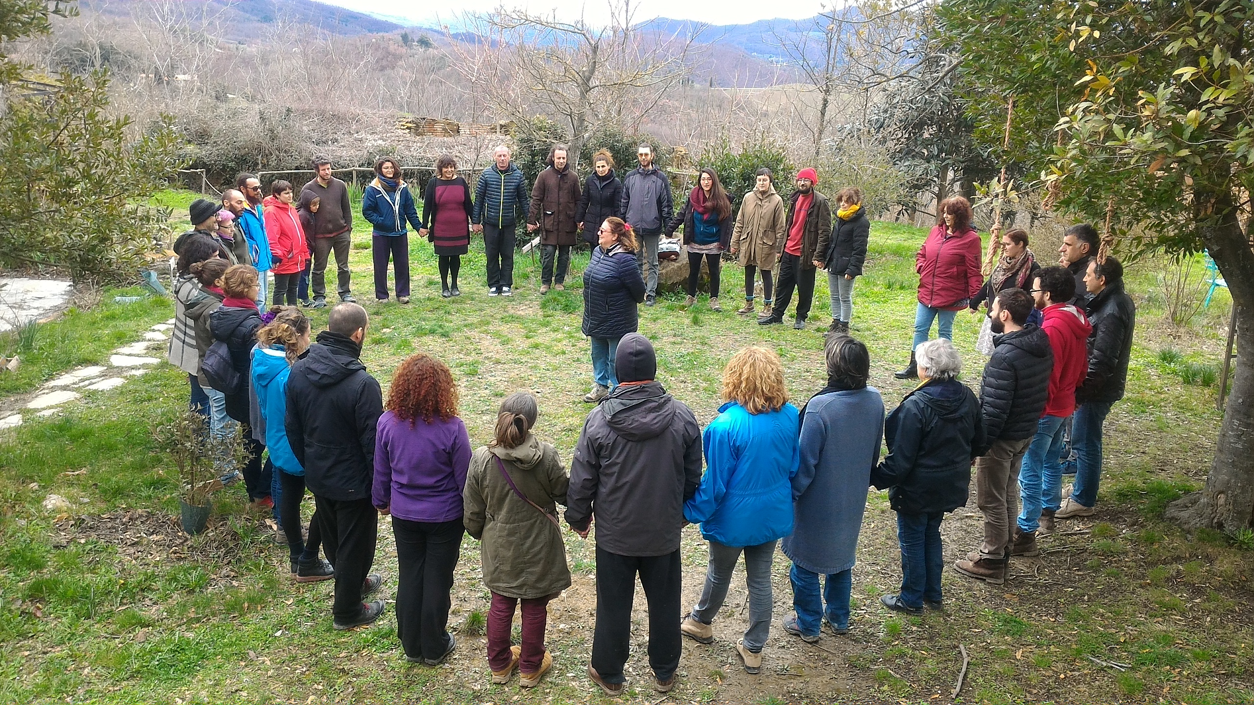 Da giovedì 15 a domenica 18 marzo abbiamo dunque simulato la fondazione di un ecovillaggio. Accompagnati dai nostri esperti, siamo partiti dalla ricognizione del luogo prescelto e dai sogni dei partecipanti per costruire una visione comune attraverso il dragon dreaming, toccando successivamente tutti gli aspetti che rendono possibile la realizzazione e la gestione di un microsistema etico tendente all’autosufficienza: permacultura, bioedilizia, cucina comunitaria, autocostruzione, sostenibilità economica, più una parte dedicata alla vita e alle dinamiche di gruppo, inclusi esercizi di autogestione.