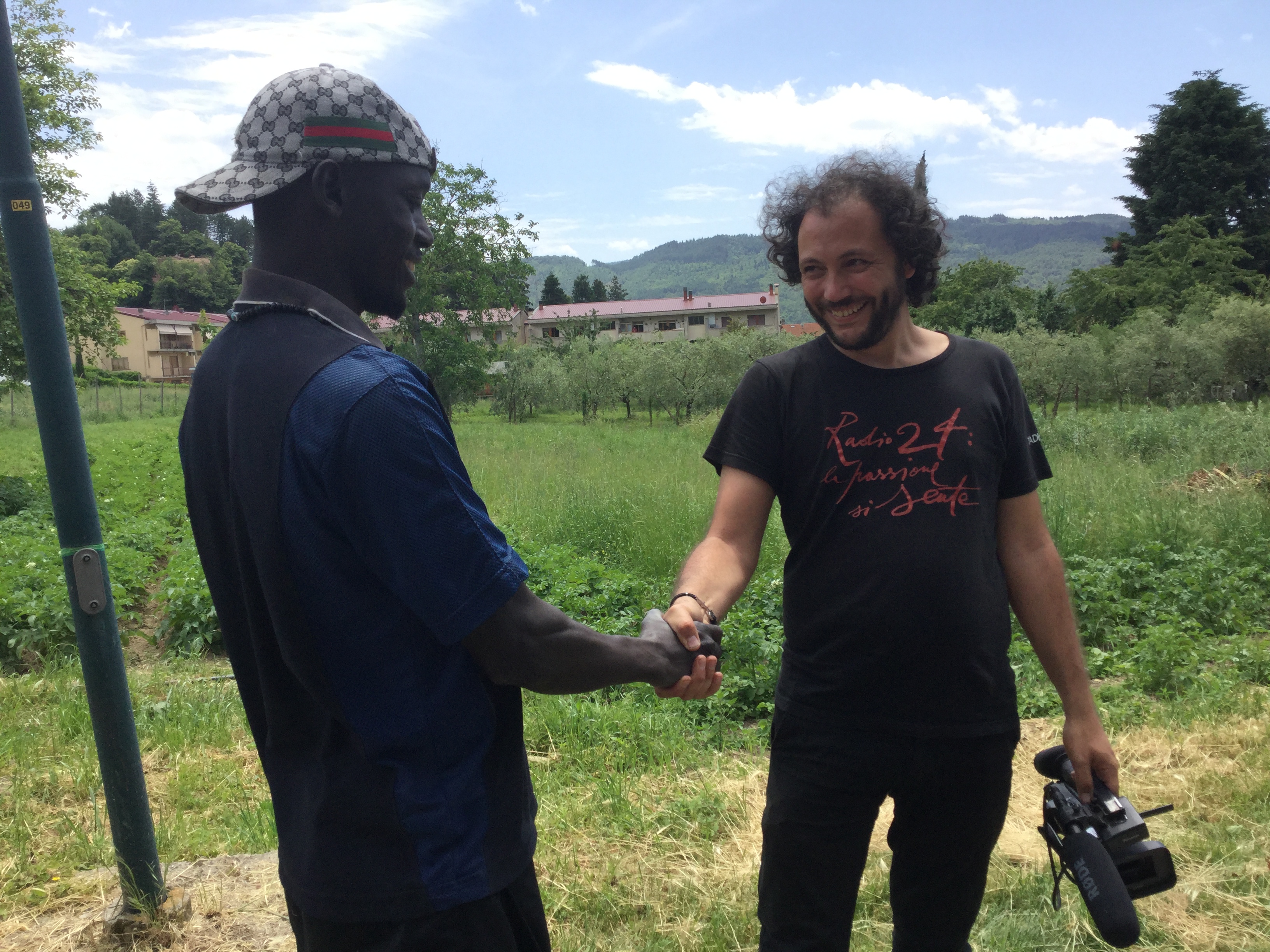 Daniel Tarozzi dopo l’intervista ad uno dei ragazzi del progetto “Orti nelle case” a Pomino (Firenze)