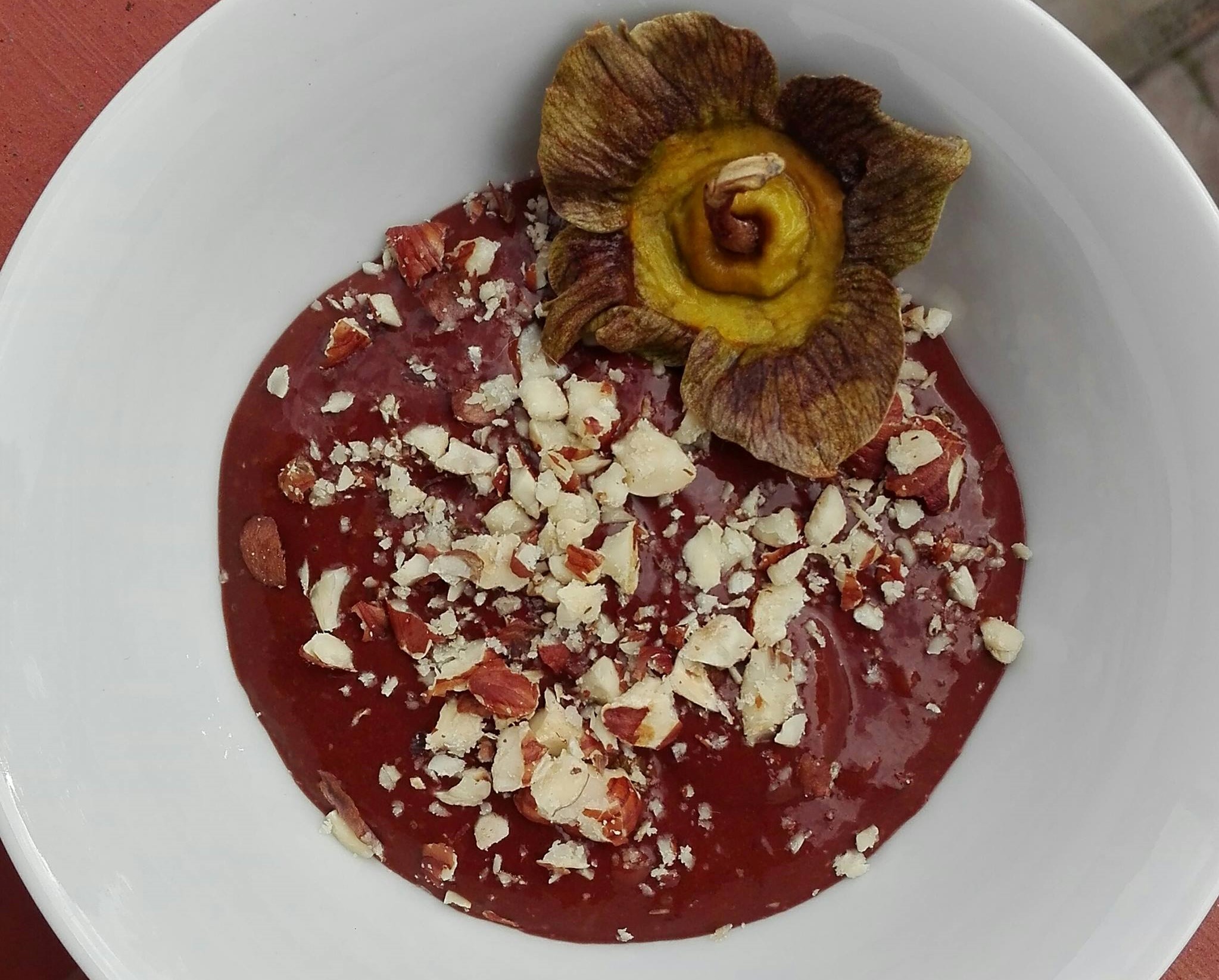 Prendete un caco molto maturo (il rischio è che abbia ancora troppi tannini, che gli conferirebbero un gusto astringente davvero spiacevole) togliete il picciolo e lavatelo per bene. Usando un frullatore ad immersione, frullate il caco aggiungendo durante l’operazione la polvere di cacao. A parte tritate le nocciole e usatele per guarnire questa mousse velocissima e davvero golosa!