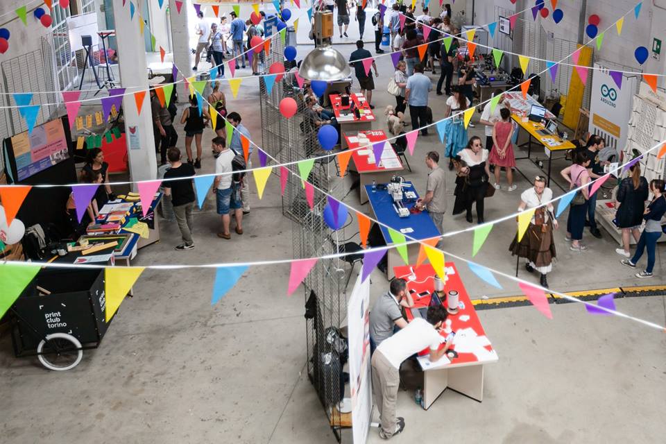 Bandiere colorate appese all’ingresso, persone in movimento e bambini che corrono divertiti, danno il benvenuto alla fiera. E’ un ambiente giovane e vivace quello che si respira oggi. Un evento organizzato da Fablab Torino, primo laboratorio di fabbricazione digitale aperto in Italia. Proprio qui si è riunita la comunità dei Makers, dei creativi, degli innovatori che fanno parte di quel movimento di “artigiani digitali del XXI secolo”, che nasce proprio dall’incontro tra il fai-da-te tradizionale e l’utilizzo di software ed apparecchiature Open Source.