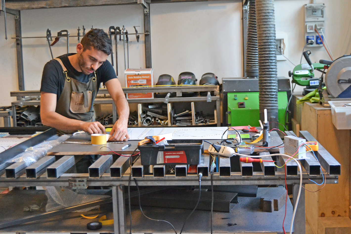 Entusiasti degli incontri precedenti proseguiamo alla volta di Izmade dove incontriamo Alessandro, che a Torino opera nel campo dell’eco-design autoprodotto e che, coi suoi soci, ha dato vita ad “Izlab”, uno spazio di lavoro quale ibridazione tra uno studio di design e un laboratorio artigianale, tra un’officina e uno studio di architettura.