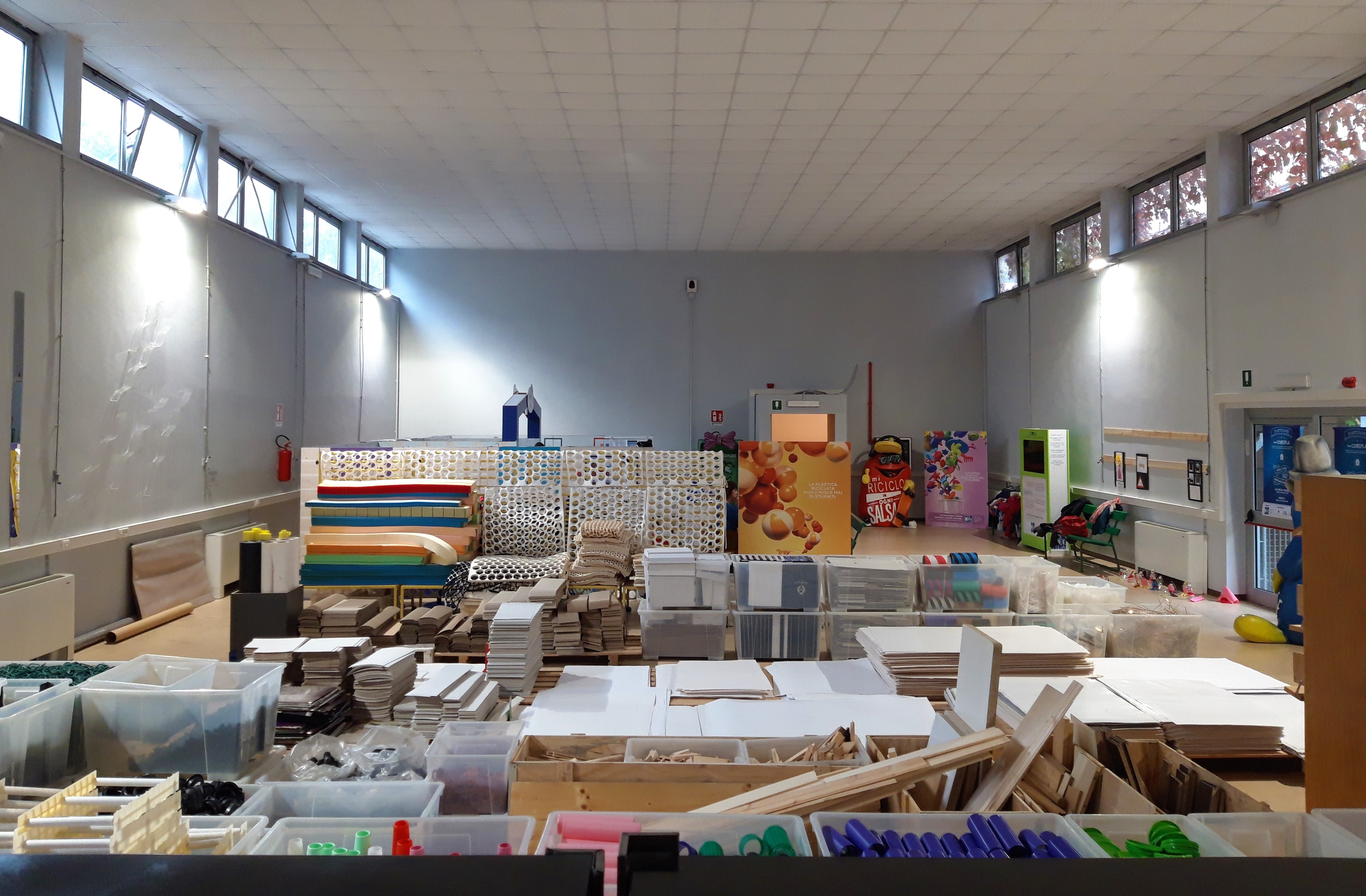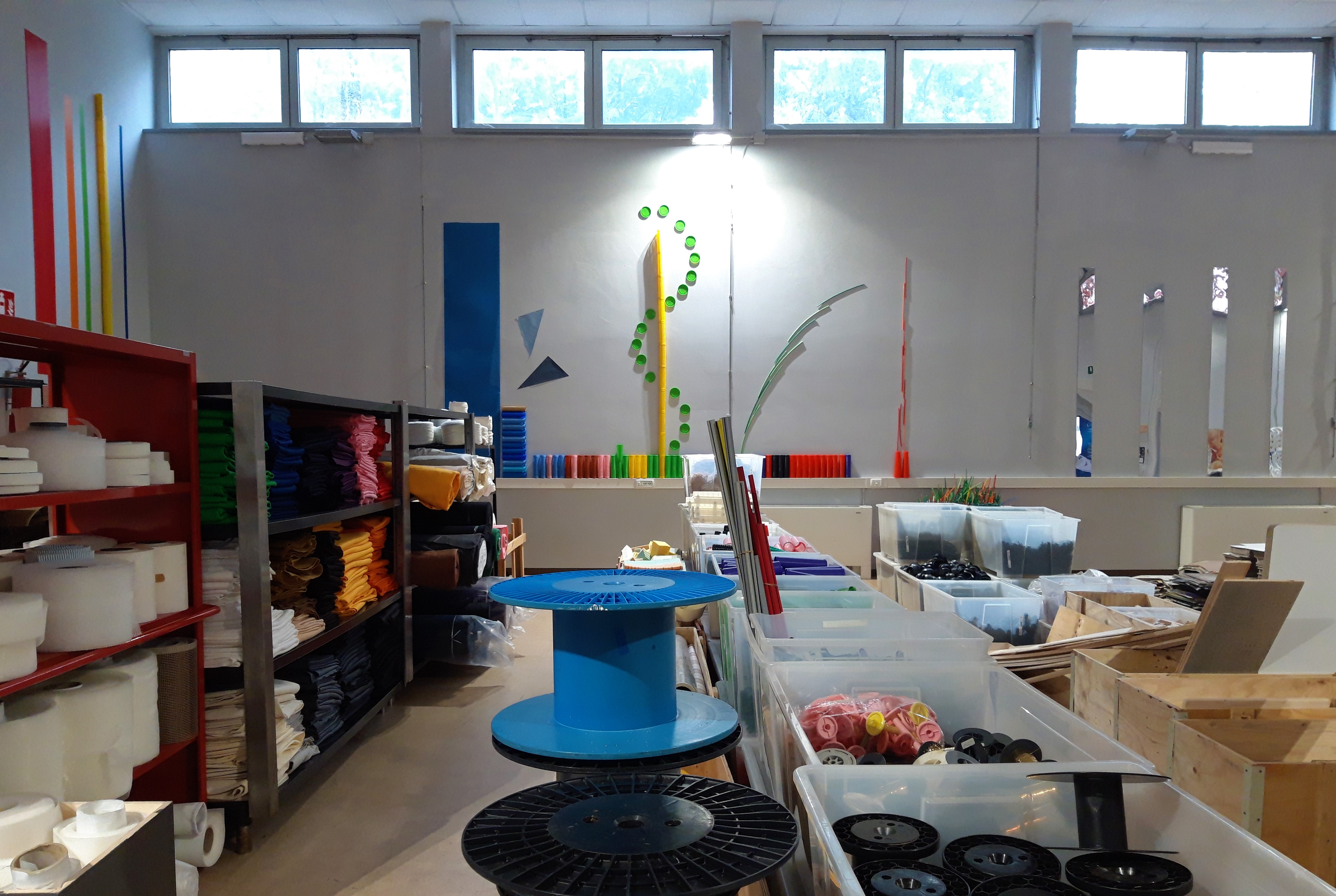 Si tratta di materiali fallati, fondi di magazzino o eccessi di produzione che le aziende mettono a disposizione e che, in alternativa, sarebbero stati destinati allo smaltimento. Materiali che all’interno del magazzino creano un labirinto creativo in cui perdersi e mandano un chiaro messaggio: “le risorse non sono infinite ed essere scarto non vuol dire essere un materiale povero”.