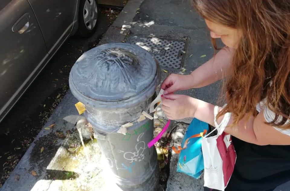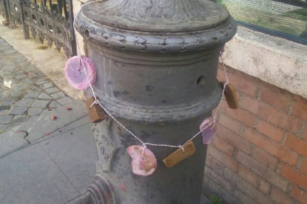Durante l’isolamento ho pensato a un’idea da lanciare per agire contro la paura, promuovere la vita comunitaria, il dono, lo scambio, l’autoproduzione…. Siccome ho vissuto anche la guerra mi è molto chiara l’importanza dell’agire dal basso e del mutuo aiuto. Da subito l’idea della saponetta sospesa ha avuto una buona accoglienza e ho ricevuto varie richieste, da parte di amici e conoscenti, di mettere le saponette anche sulle fontanelle vicino a casa loro. Così ho pensato di iniziare a coinvolgere le persone del quartiere spingendole a partecipare. Subito dopo il lockdown, anche altri quartieri sono stati coinvolti. Sono stata contattata dalle persone di Pigneto, piazza Vittorio, Parioli… Ho accolto l’entusiasmo di molte persone, commosse perché hanno trovato e riconosciuto qualche mia saponetta in giro per Roma.
