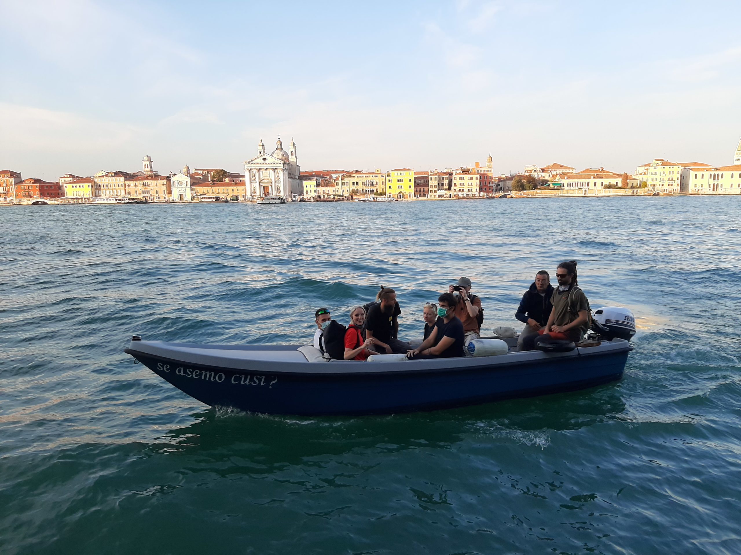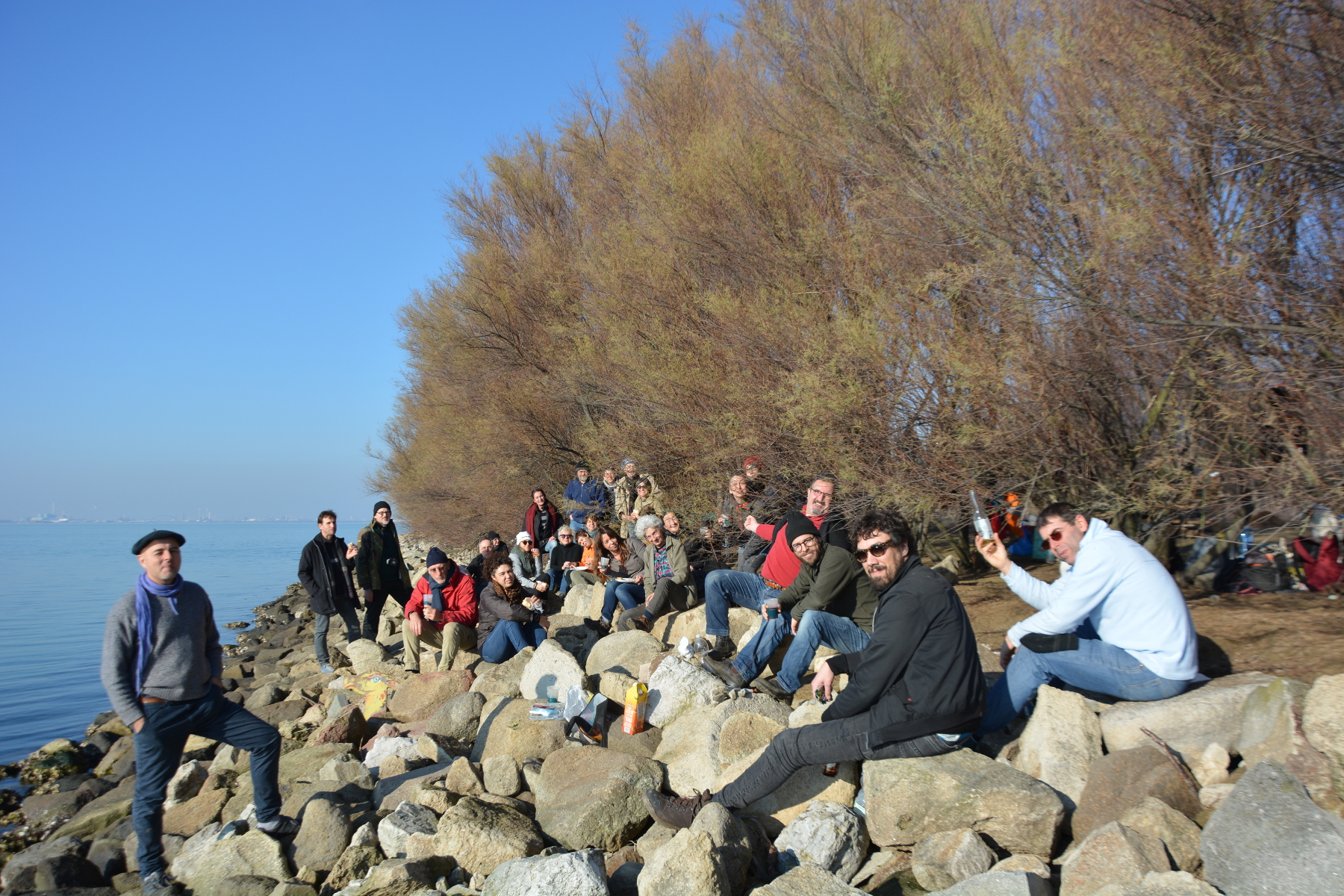 Circa due ore prima Marco Bassi è venuto a prenderci in fondamenta delle Zattere, sul Canale della Giudecca all’altezza della Chiesa di Santa Maria del Rosario. Marco è uno dei soci della prima ora di “Poveglia per Tutti”. Si definisce un “filosofo artigiano” perché dopo la laurea in Filosofia ha gestito un laboratorio di maschere tradizionali veneziane. Attualmente fa l’insegnante di Italiano e Storia. Con la sua barchetta privata si è offerto di trasportarci fino alla Giudecca, il quartiere-isola di Venezia dove l’iniziativa è nata, ormai sei anni fa. Ci ha fatto accomodare in mezzo al verde del suo giardino, ha tirato fuori del salame, dei crackers e qualche bicchiere di vino – «un’ombra di vino si dice in veneziano» – e di fronte a questo squisito aperitivo improvvisato ha – o per meglio dire hanno – iniziato a raccontare la storia dal principio. Perché hanno? Perché nel frattempo ci hanno raggiunto Andrea Barina, Lorenzo Pesola e Franco Schenkel, tutti membri dell’associazione Poveglia per Tutti.